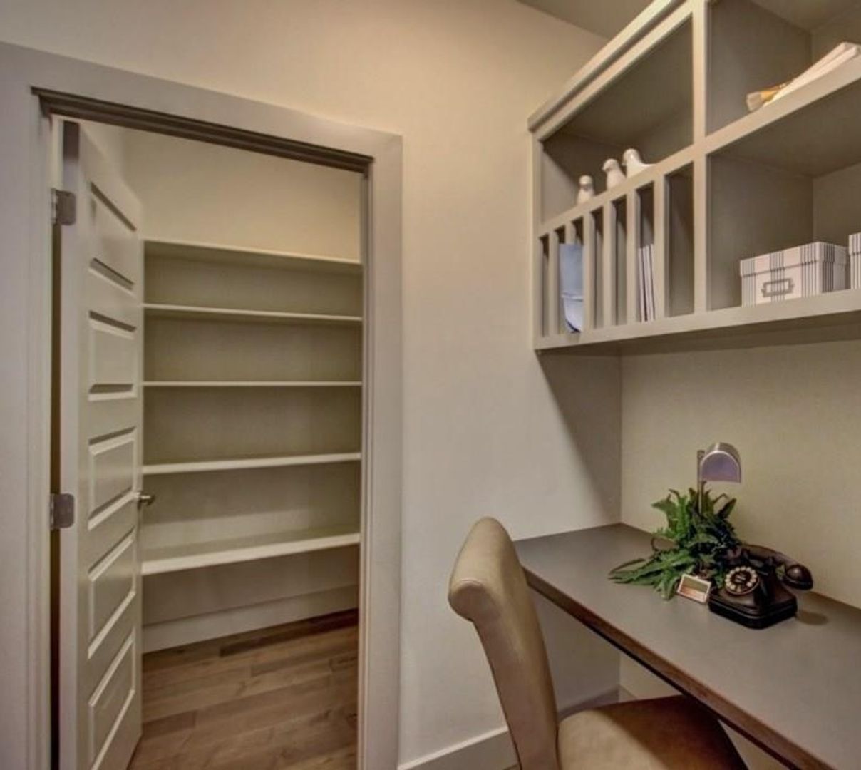 The main level features a versatile fifth bedroom with a closet perfect for a home office or guest space. The kitchen is both stylish and practical, showcasing stone countertops, custom cabinetry, stainless steel appliances, a spacious pantry, and a breakfast bar that flows seamlessly into the dining area and living space, complete with a cozy gas fireplace.